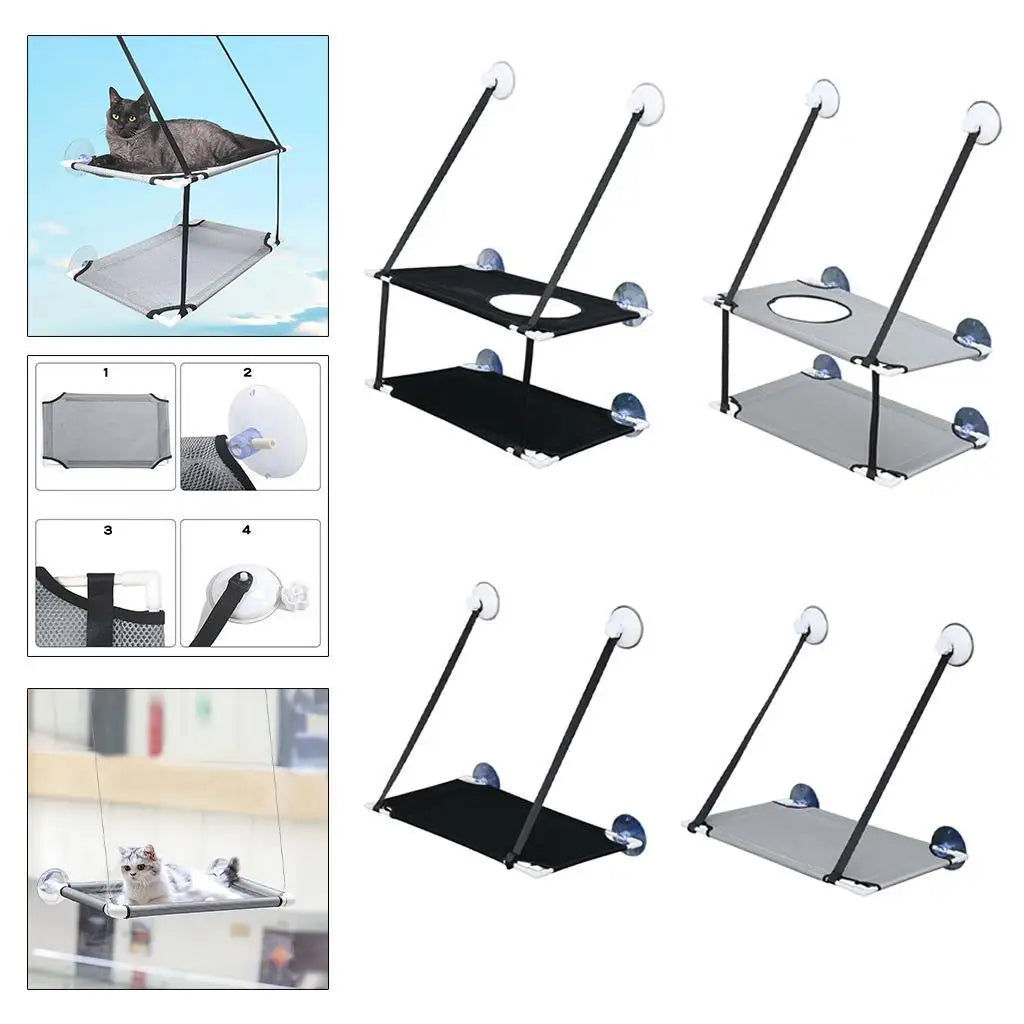 Safety --- The cat hammock uses high-quality suction cups. The thickened steel wire has a stronger load-bearing capacity. The steel wire is burr-free and will not harm your cat.